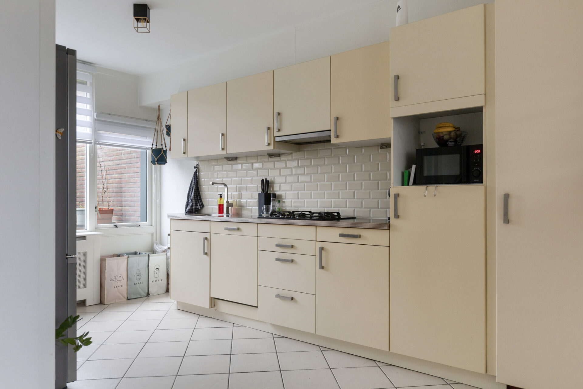 Begane grond: Via de entree komt u in de hal met een modern toilet en fonteintje, een vernieuwde meterkast en een vaste kast. De royale woonkamer is heerlijk licht en afgewerkt met een nette laminaatvloer. De open keuken is voorzien van een tegelvloer en afgewerkt met diverse inbouwapparatuur.