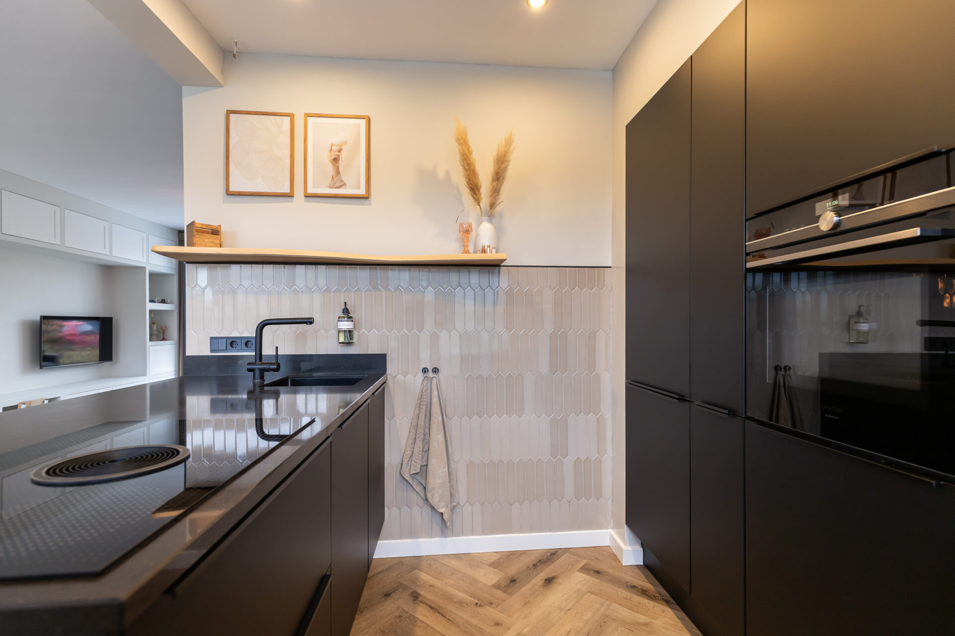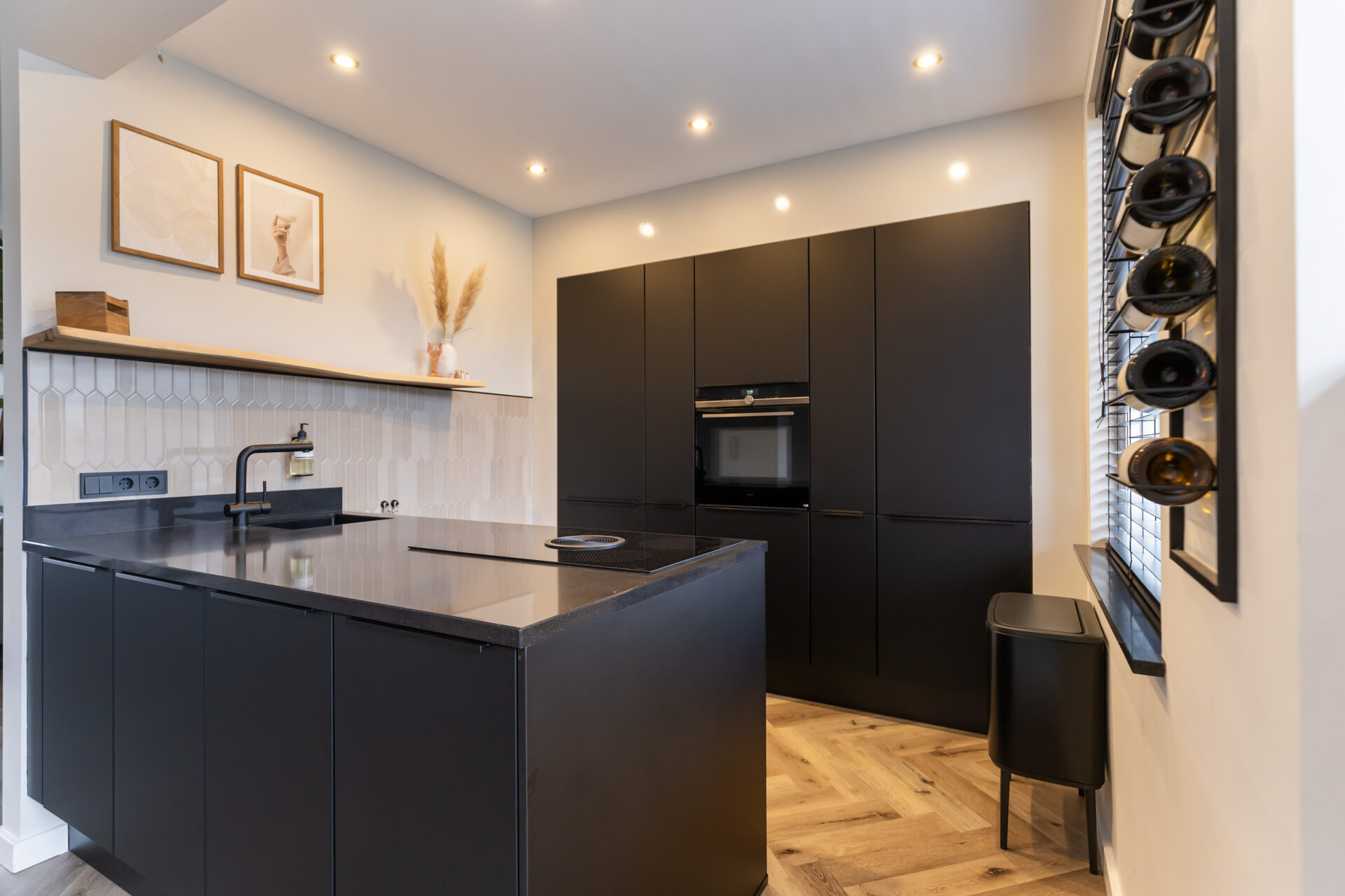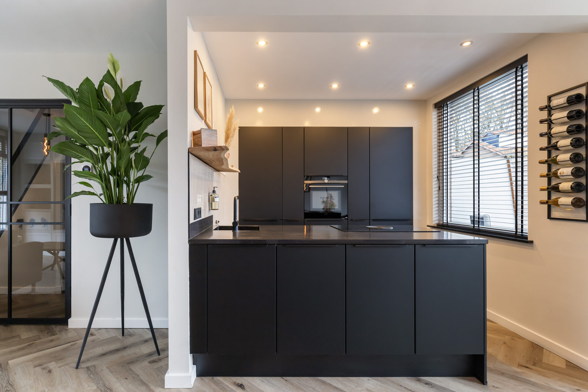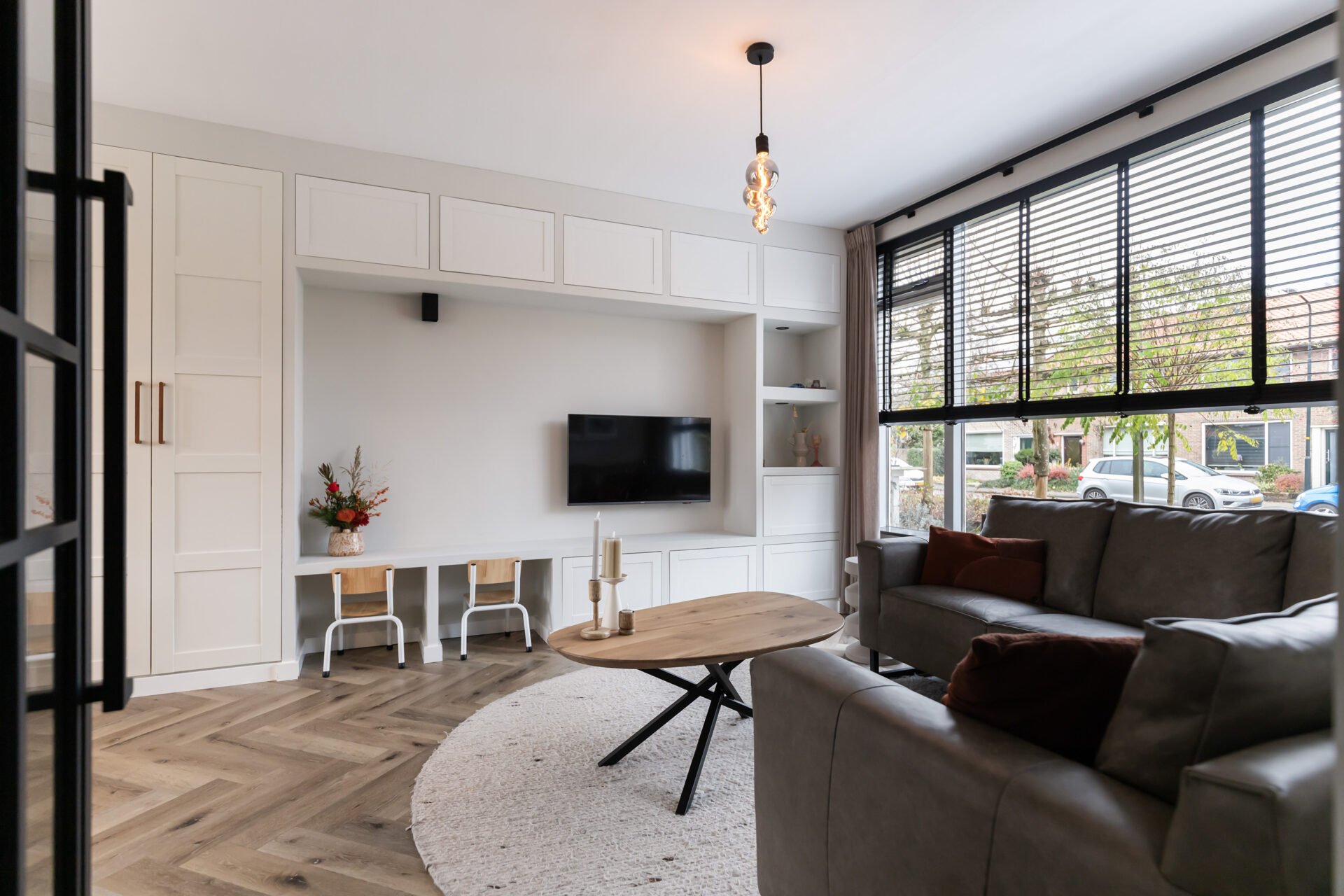 Binnen word je verwelkomd door een lichte en prettige leefruimte. De woonkamer aan de voorzijde voelt ruim en uitnodigend, terwijl de eetkamer aan de achterzijde grenst aan de prachtige open keuken met royaal kookeiland. Hier is gekozen voor hoogwaardige materialen en uitstekende inbouwapparatuur – een ideale plek om te koken, borrelen en samen te komen. Via de dubbele deuren loop je zo de tuin in.