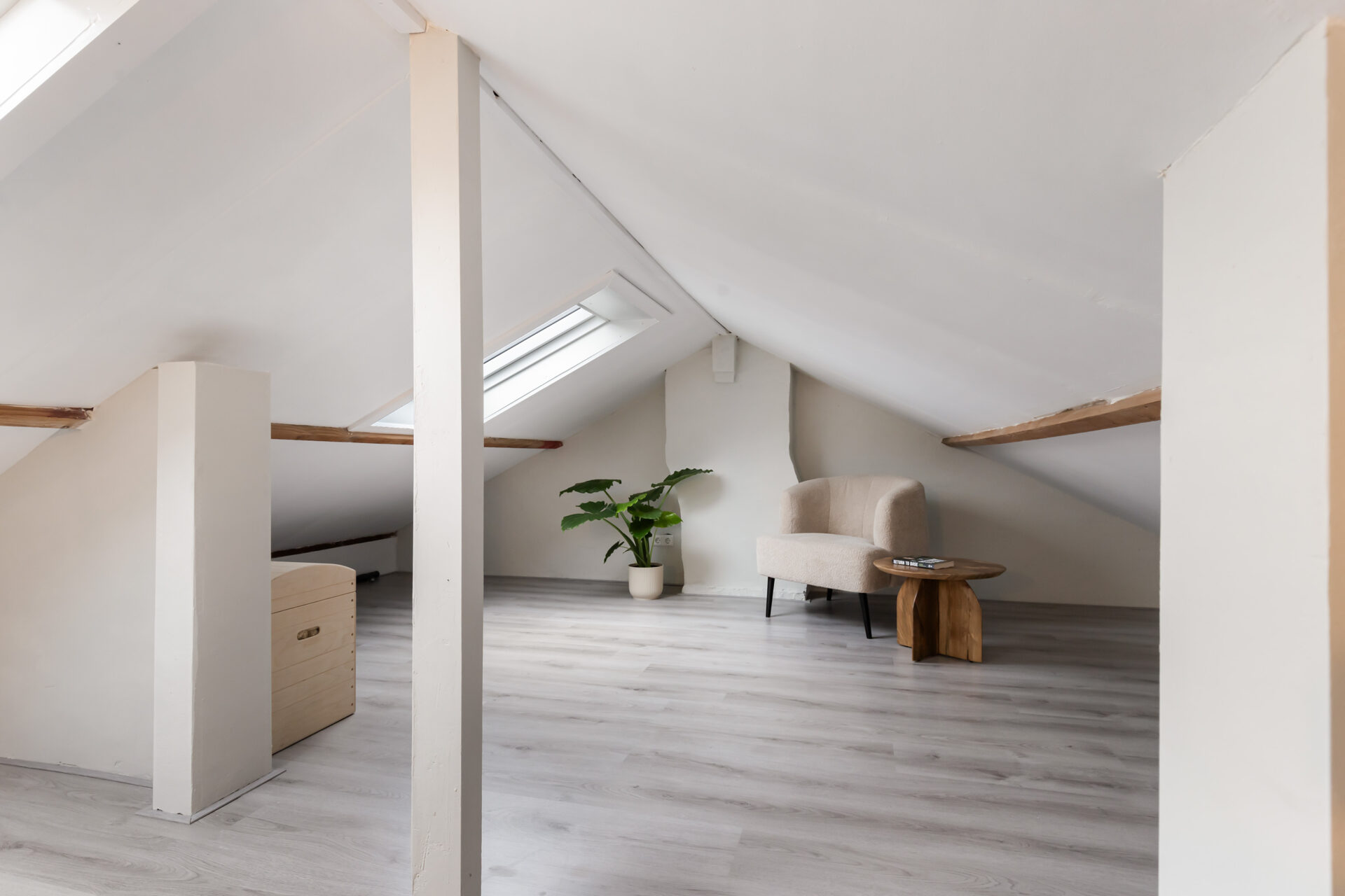 Op de eerste verdieping bevinden zich drie verzorgde slaapkamers, waarvan één met balkon aan de achterzijde. De moderne badkamer is voorzien van een inloopdouche, tweede toilet en vloerverwarming. De tweede verdieping biedt een ruime bergzolder met wasmachineaansluiting en veel opbergruimte.