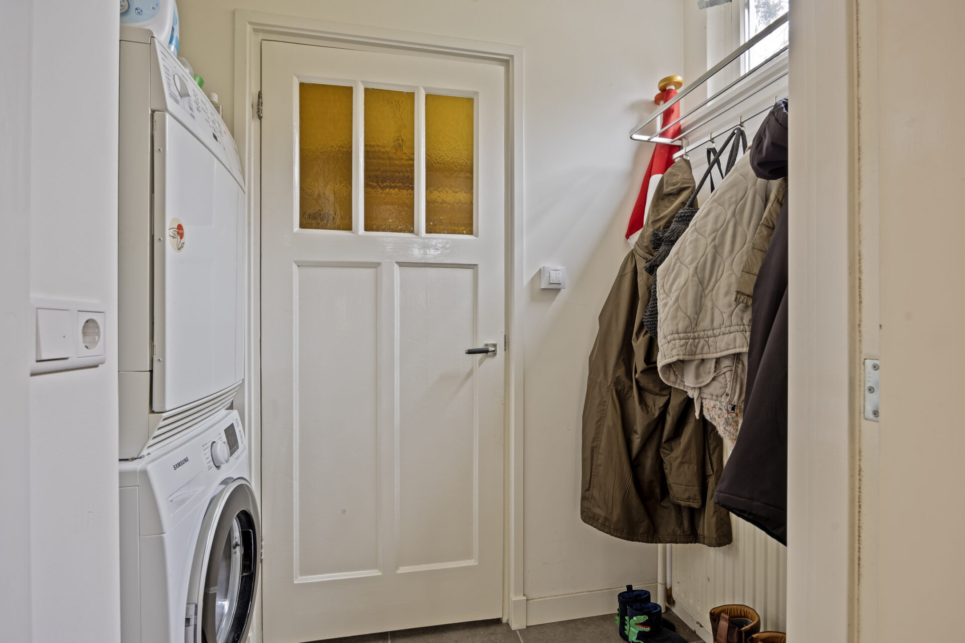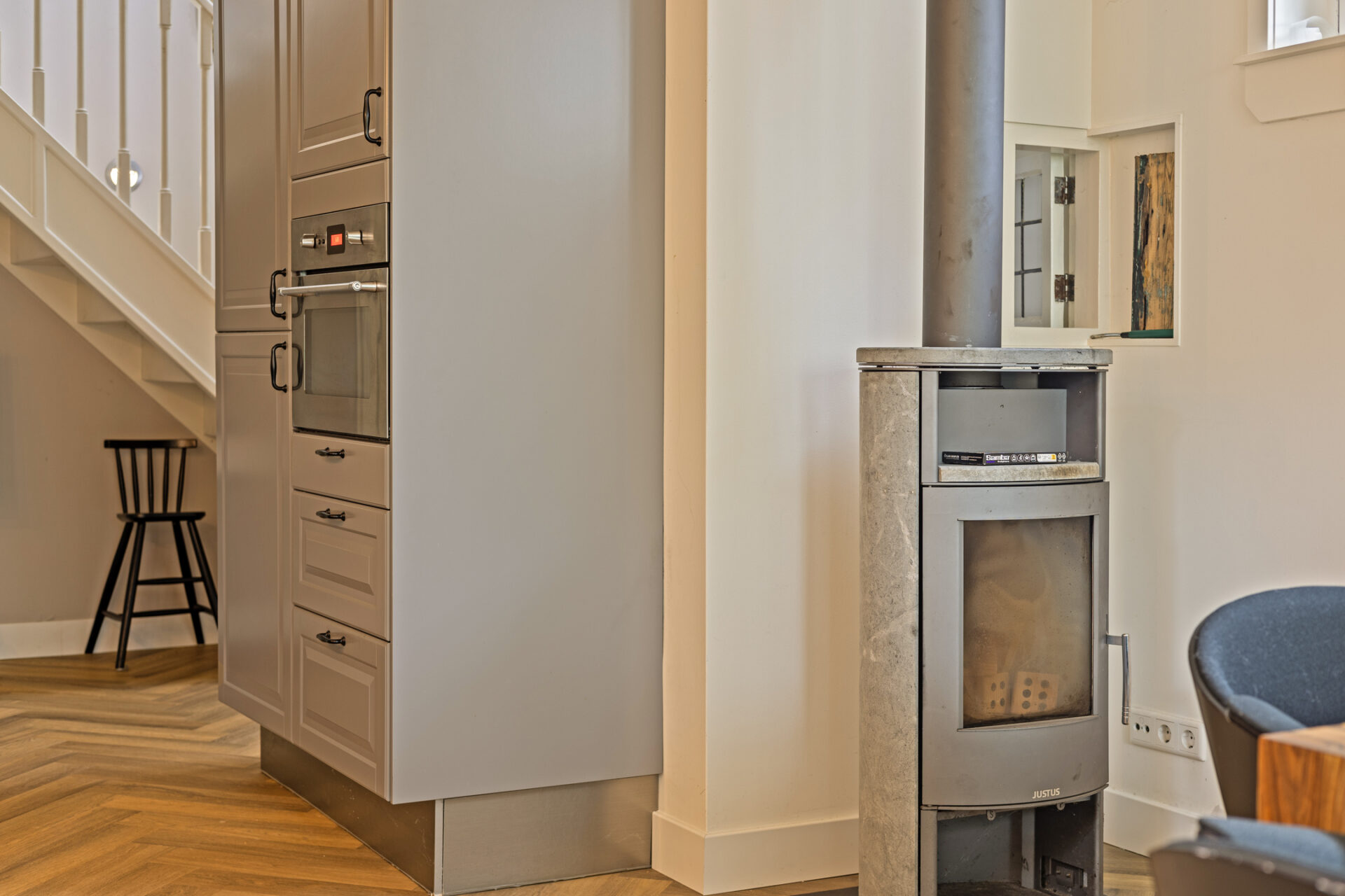 Entree/hal met toiletruimte, wasruimte en berging. De moderne woonkeuken is voorzien van diverse inbouwapparatuur, waaronder een Quooker en een 6-pits Smeg fornuis. Op deze verdieping bevindt zich tevens een comfortabele speksteen houtkachel die zorgt voor een warme en gezellige sfeer. Vanuit de woonkeuken is de voortuin toegankelijk.