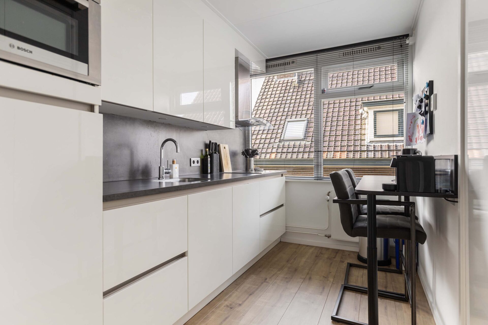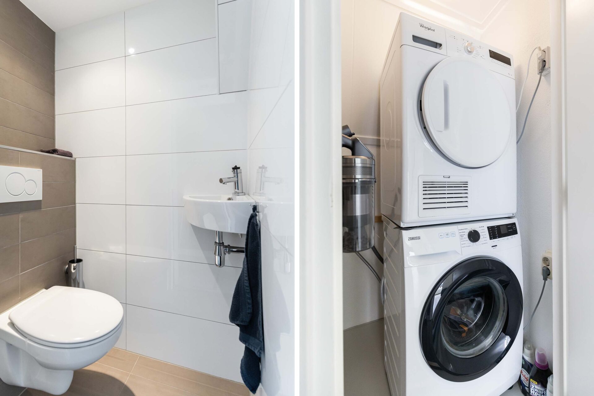 De woning beschikt over twee slaapkamers met vaste kasten. Vanuit de hoofdslaapkamer heeft u toegang tot het balkon. De moderne badkamer is uitgerust met een inloopdouche, designradiator en een stijlvol wastafelmeubel. Het separate toilet is voorzien van een fontein. Op de overloop bevindt zich een vaste kast met ruimte voor de wasmachine.