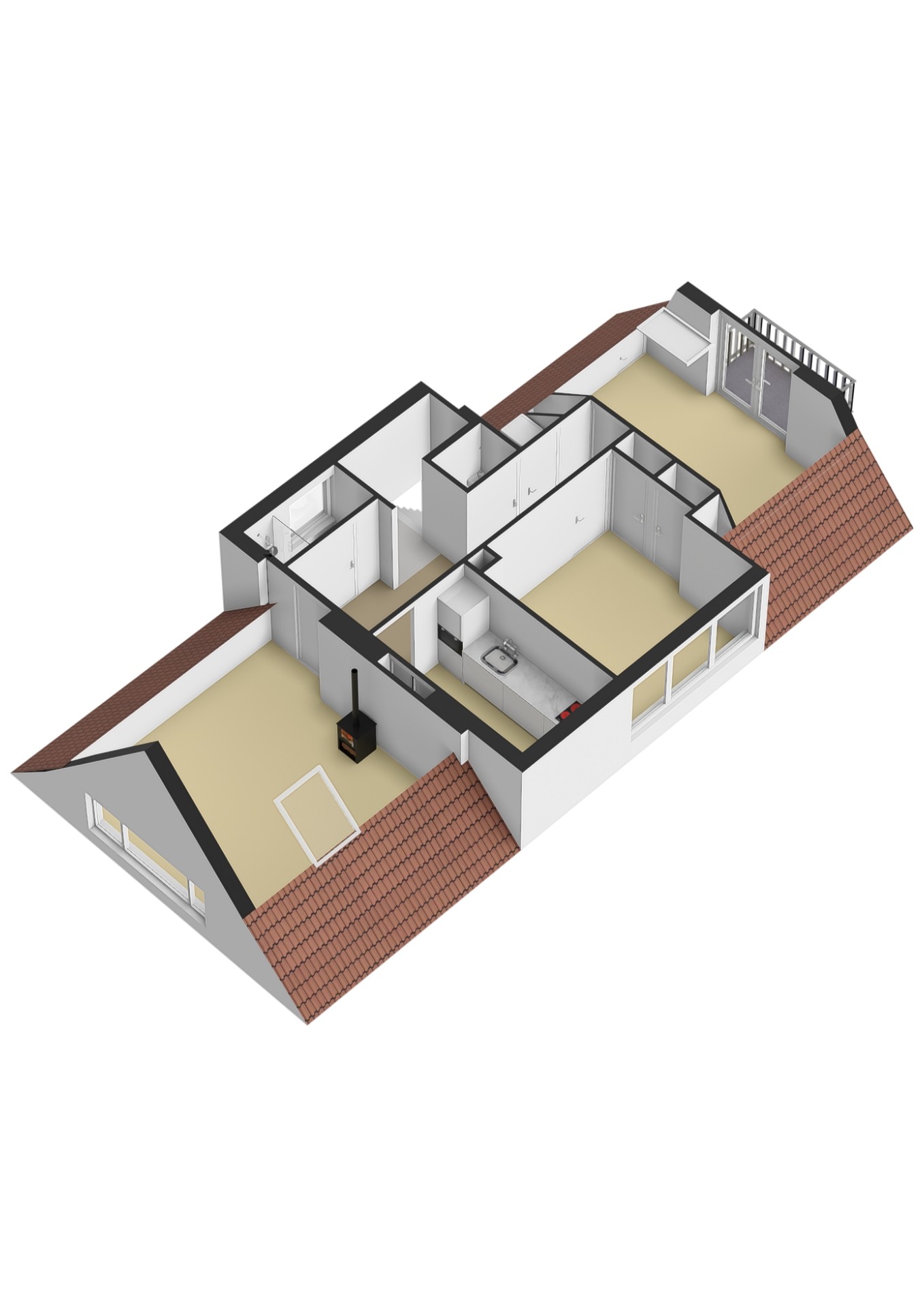 Bij binnenkomst treft u de entree met meterkast, trapopgang en garderobe. De sfeervolle woonkamer springt direct in het oog dankzij het hoge plafond, de vide met airco-installatie en de overvloedige lichtinval door het extra dakraam. Strakke afwerking, ingebouwde spotjes en een moderne laminaatvloer maken dit tot een heerlijke leefruimte.
