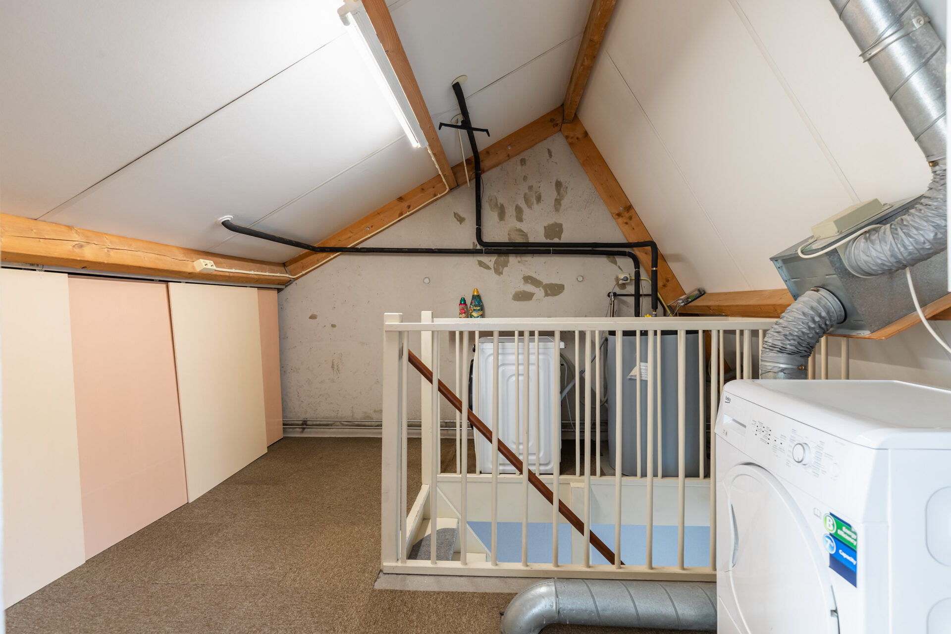Tweede verdieping: ruime voorzolder met veel opslag mogelijkheden. Tevens bevinden zich hier de C.V.-ketel opstelling, wasmachine en/of droger aansluiting en de zonneboiler aansluiting (deze is echter al jaren niet in gebruik en onbekend of deze nog functioneert). Tot slot heeft de tweede verdieping een zeer mooie 4e slaapkamer te bieden en is deze kamer voorzien van een dakkapel voor meer ruimte en heerlijk lichtinval.