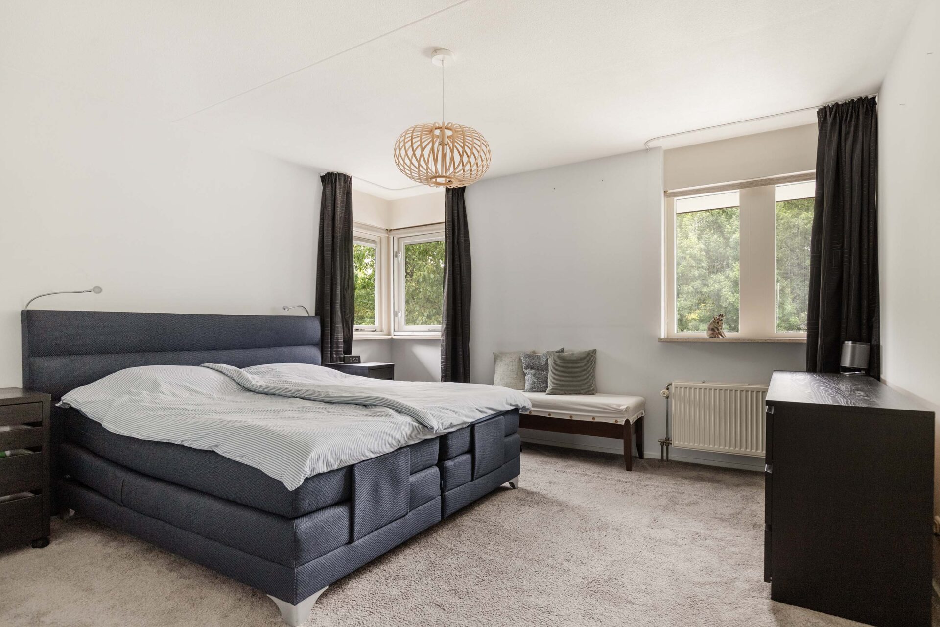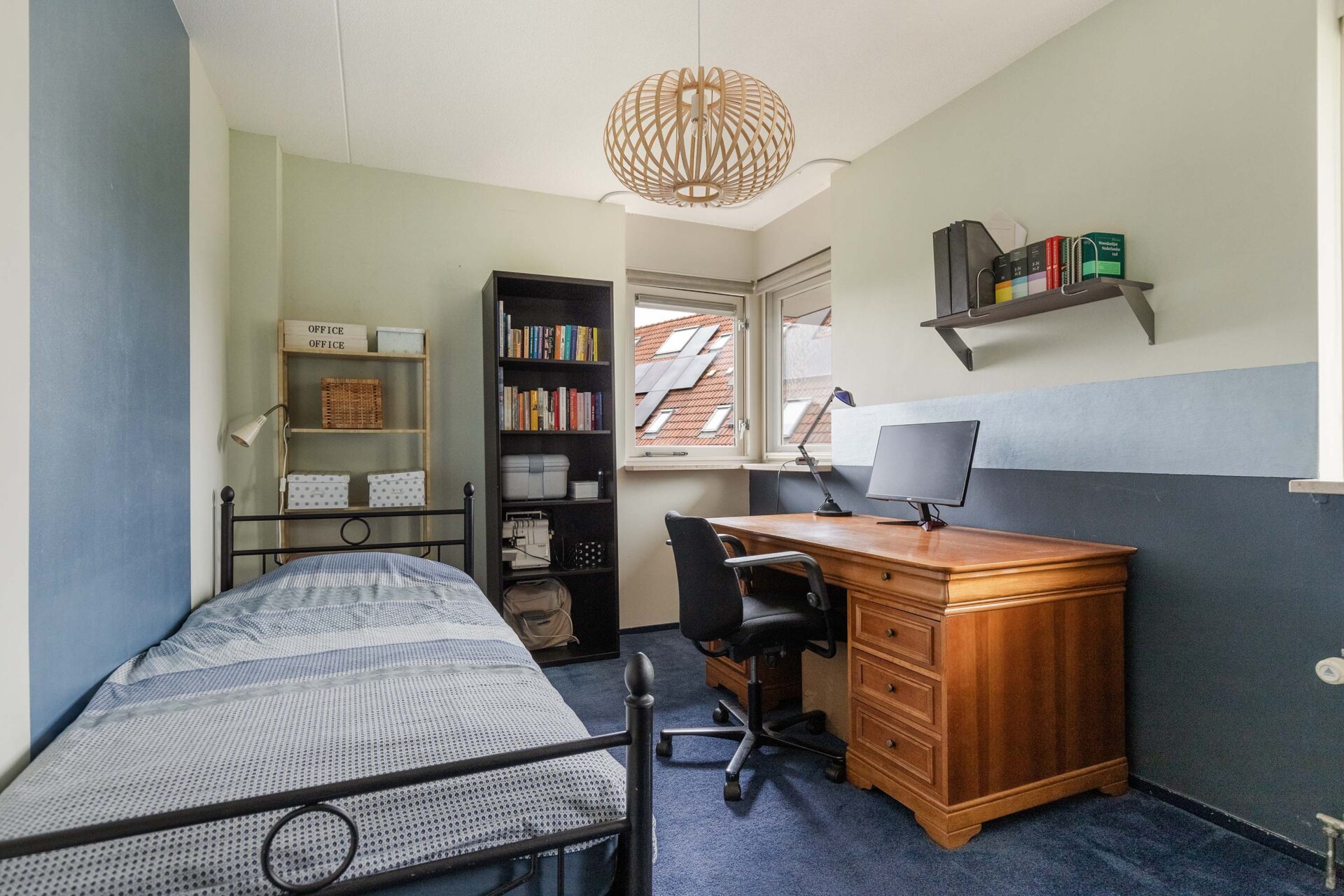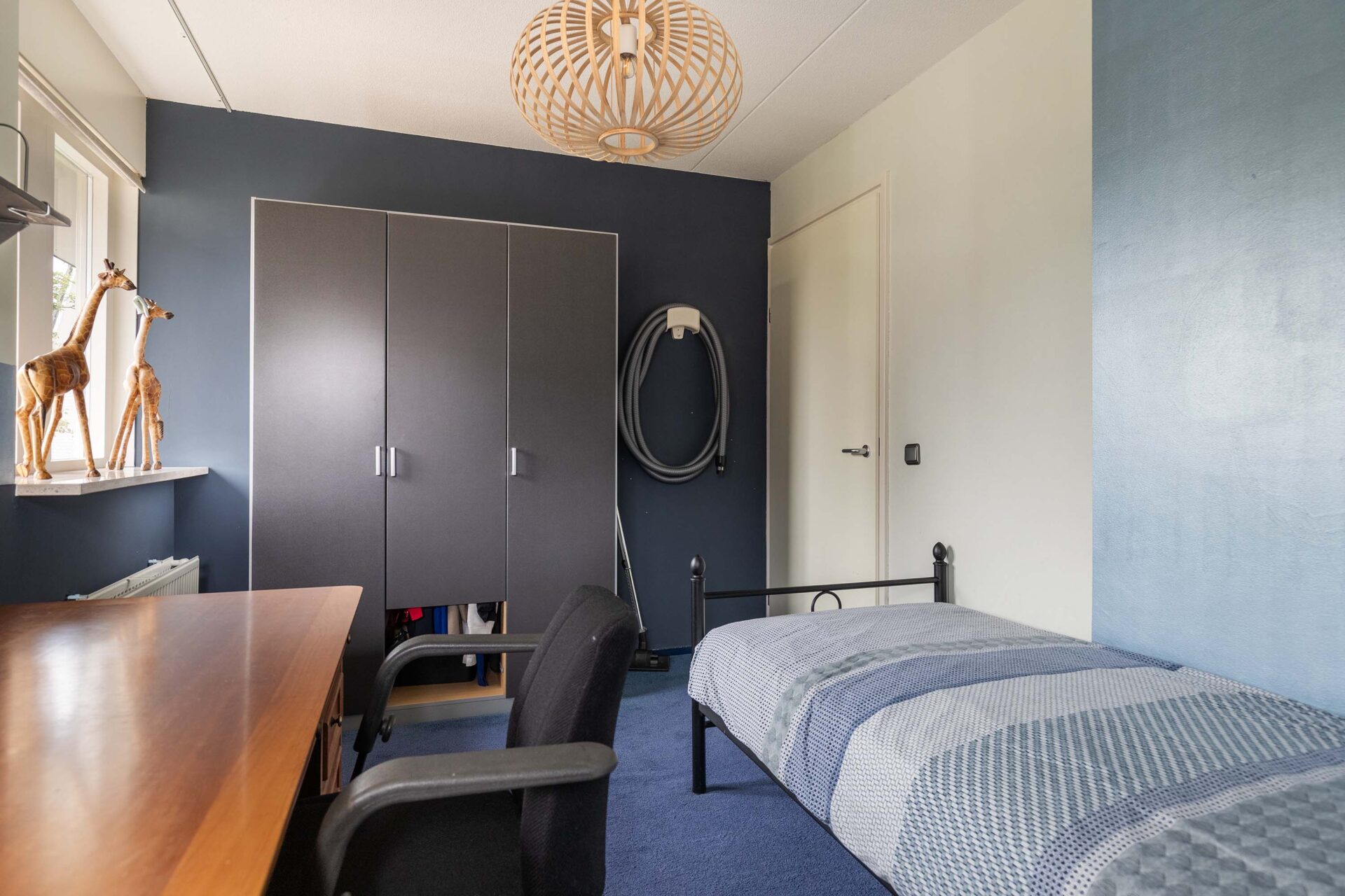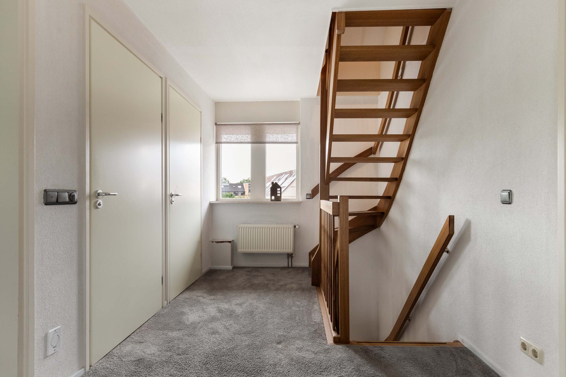 De vaste trap leidt naar een ruime zolderverdieping en een royale slaapkamer (met stahoogte van 3.39 m) met beide veel bergruimte achter de knieschotten. Hier bevindt zich, in een afgesloten ruimte, ook de opstelling van de CV-ketel en de hybride warmtepomp (beide uit 2024).