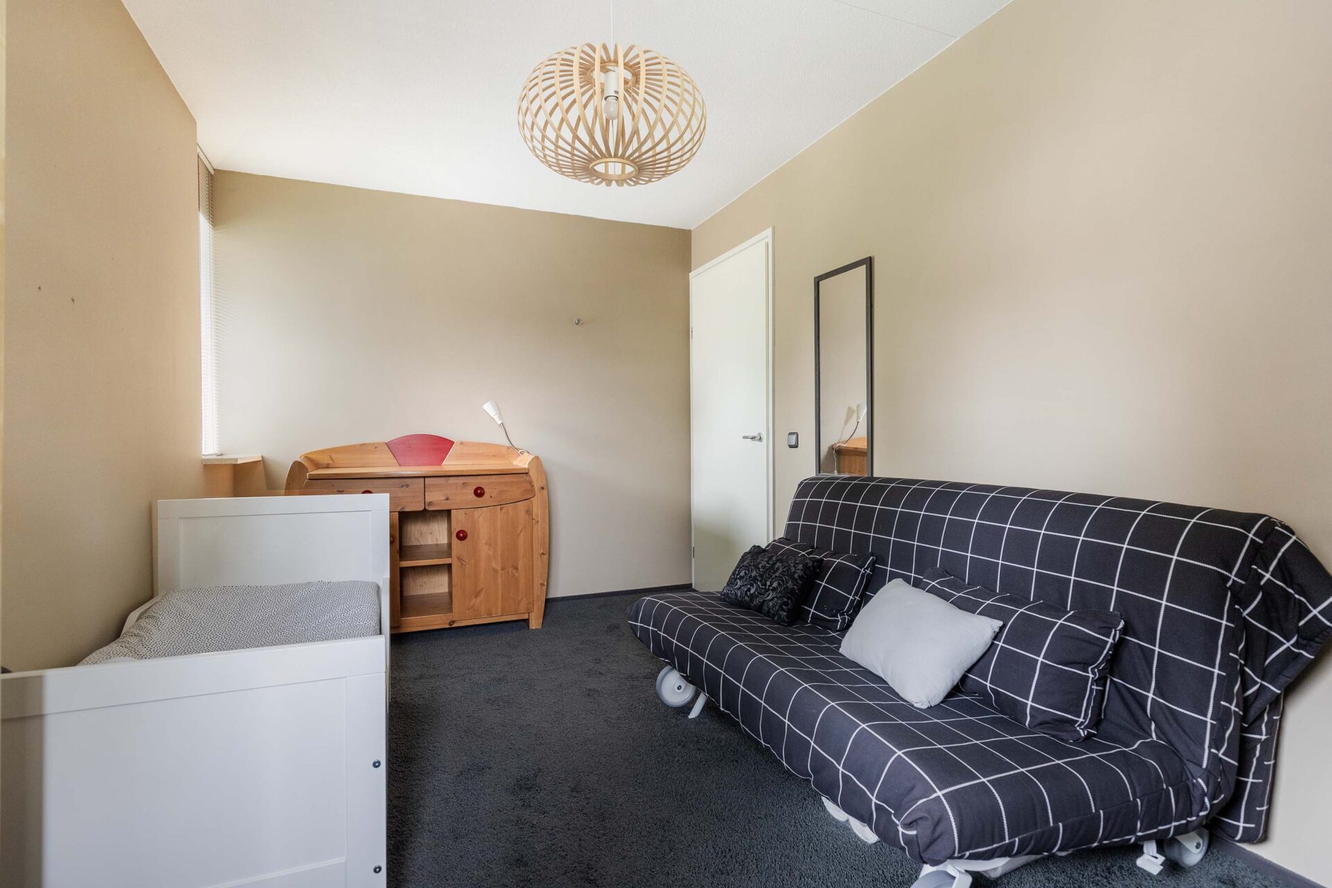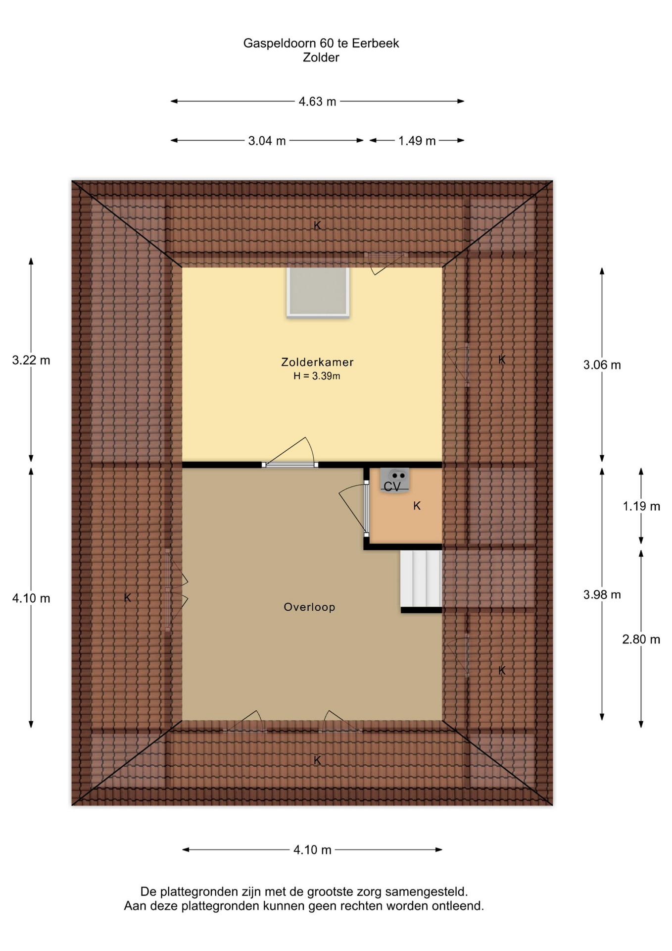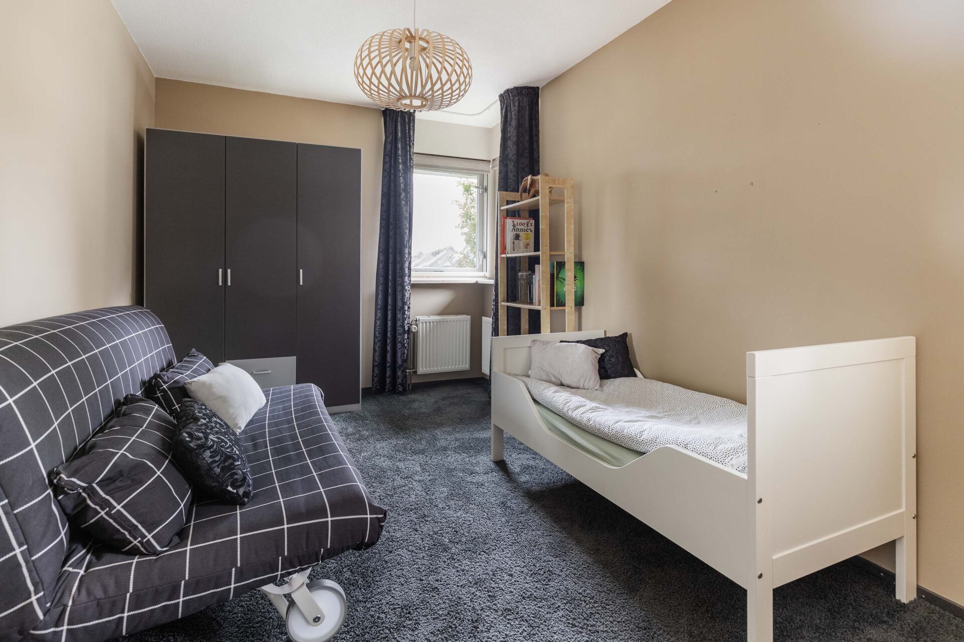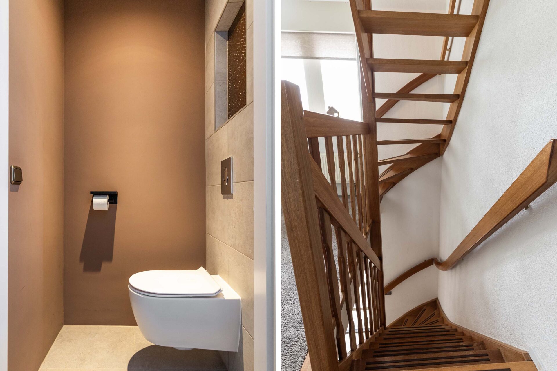De vaste trap leidt naar een ruime zolderverdieping en een royale slaapkamer (met stahoogte van 3.39 m) met beide veel bergruimte achter de knieschotten. Hier bevindt zich, in een afgesloten ruimte, ook de opstelling van de CV-ketel en de hybride warmtepomp (beide uit 2024).