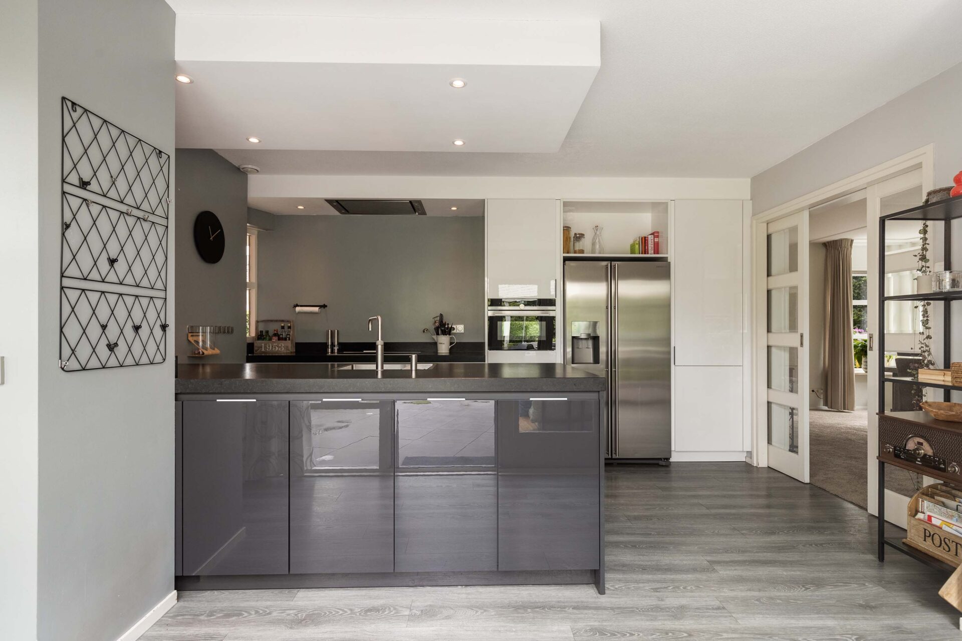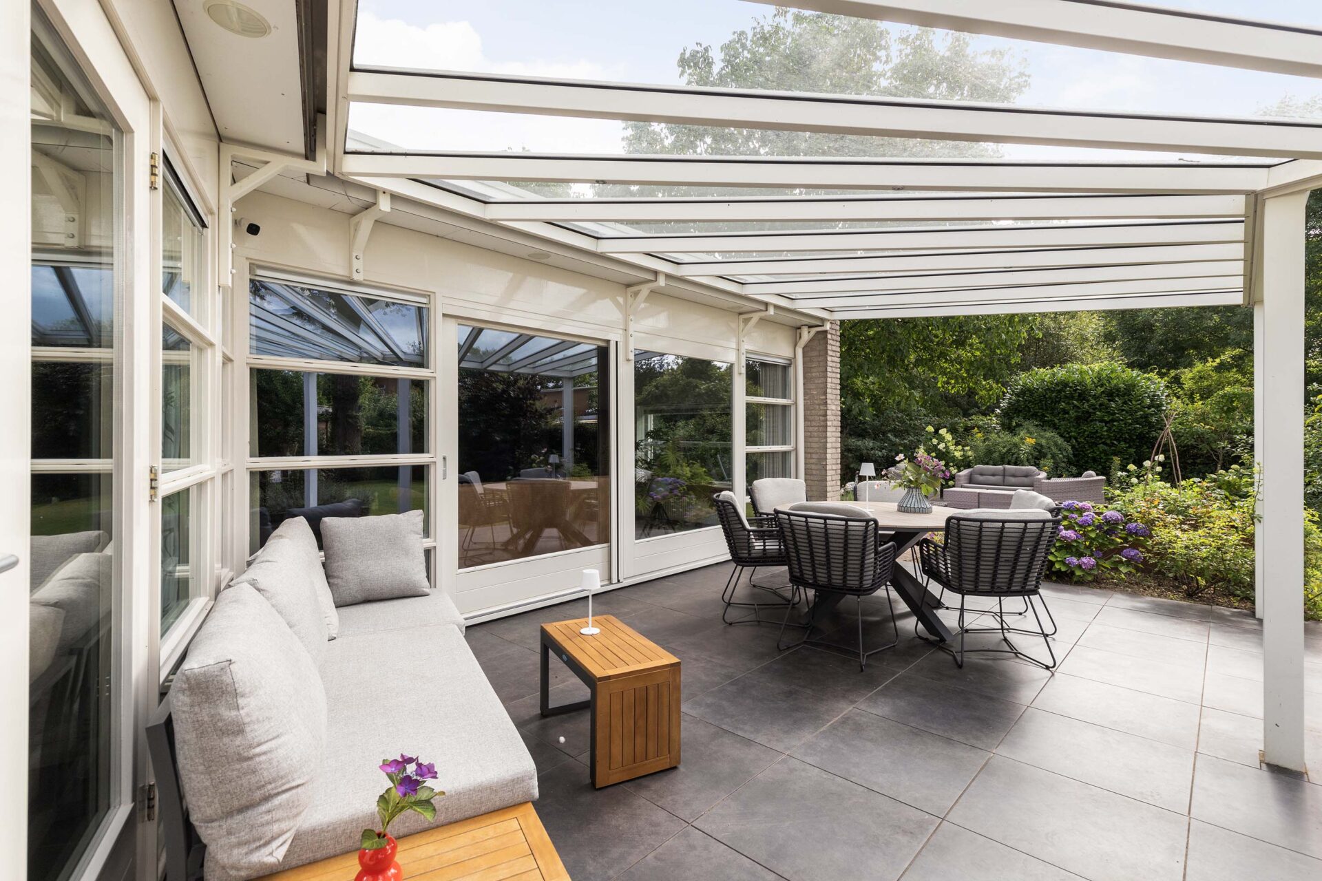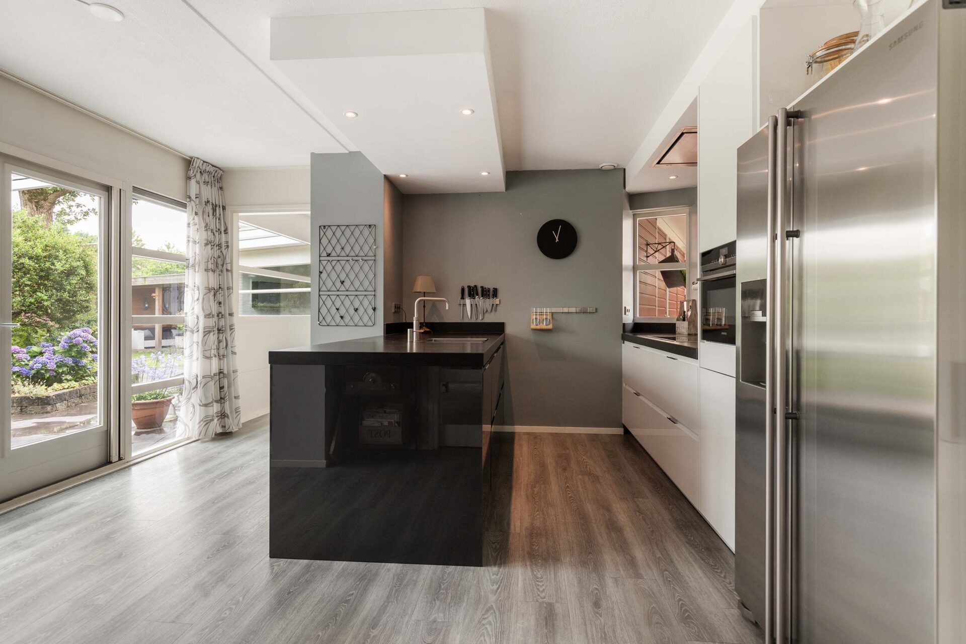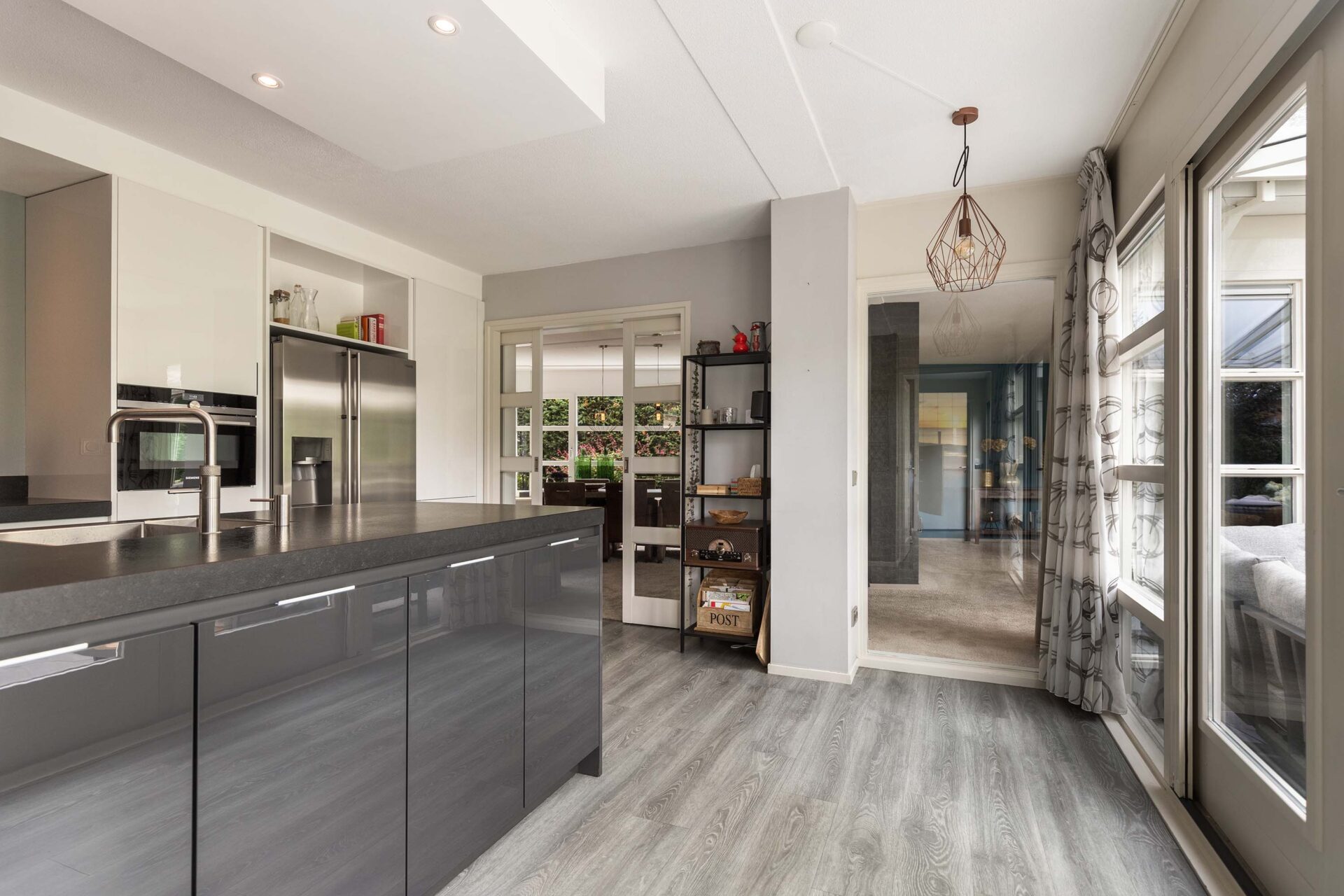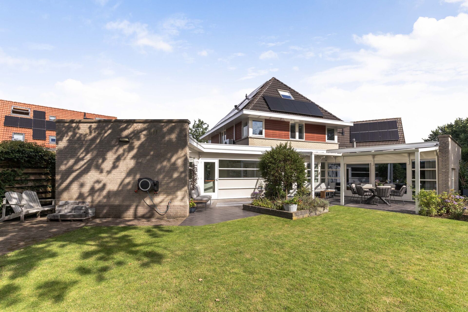 Via de ruime hal met toilet en trapopgang betreedt u de woning. De royale en lichte woonkamer heeft een unieke indeling en staat in open verbinding met de moderne keuken, welke is voorzien van diverse inbouwapparatuur. Vanuit de keuken heeft u toegang tot de bijkeuken met extra toilet. De inpandige garage is ideaal als werk- of hobbyruimte. Aan de achterzijde vindt u een ruime overkapping met glazen dak – een heerlijke plek om het hele jaar van de tuin te genieten. In de tuin bevindt zich bovendien een tweede houten overkapping voor extra beschutting en opslag van tuinmeubilair.