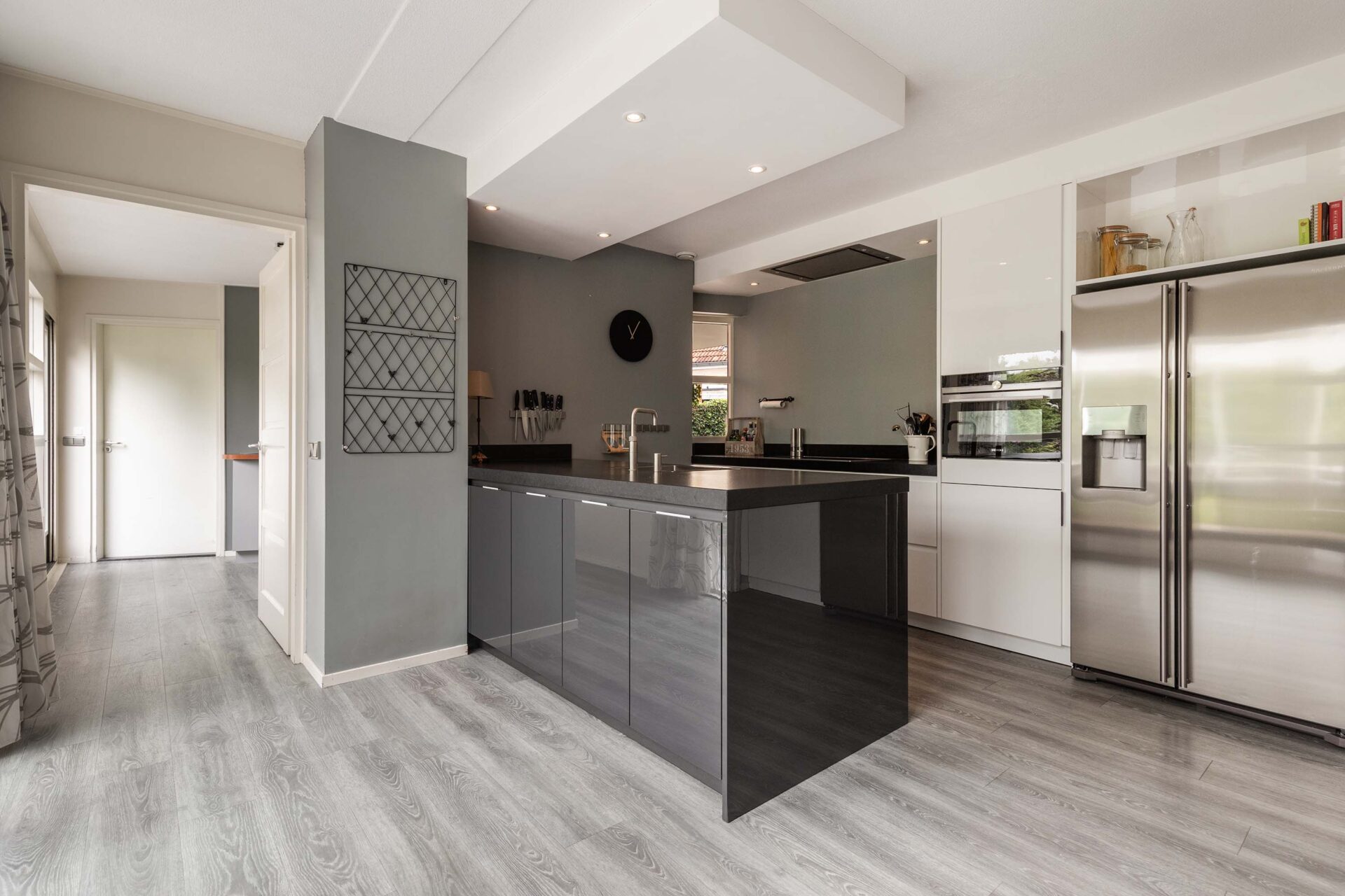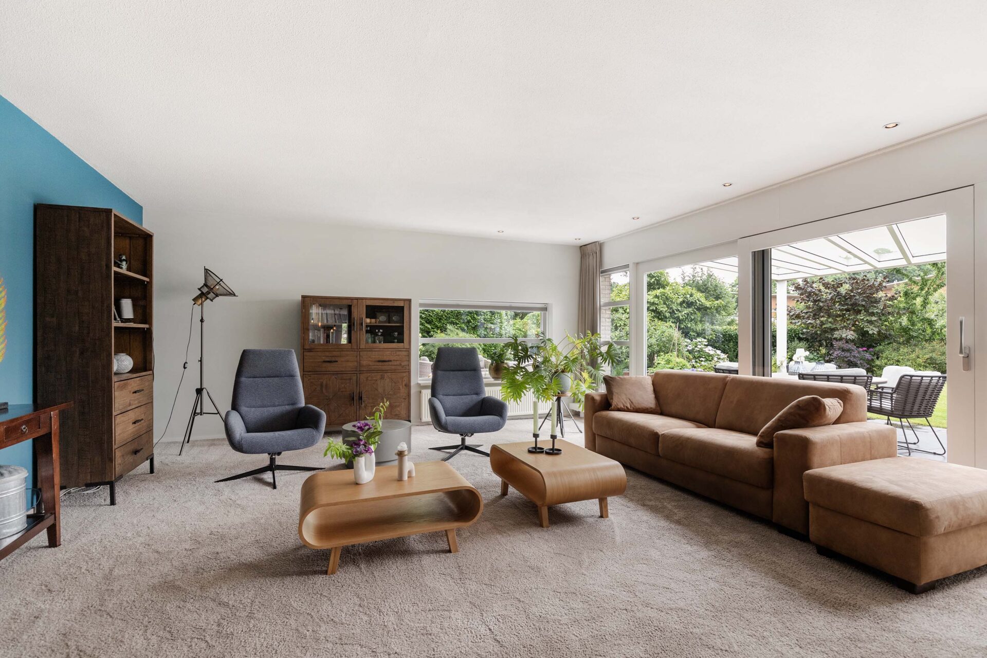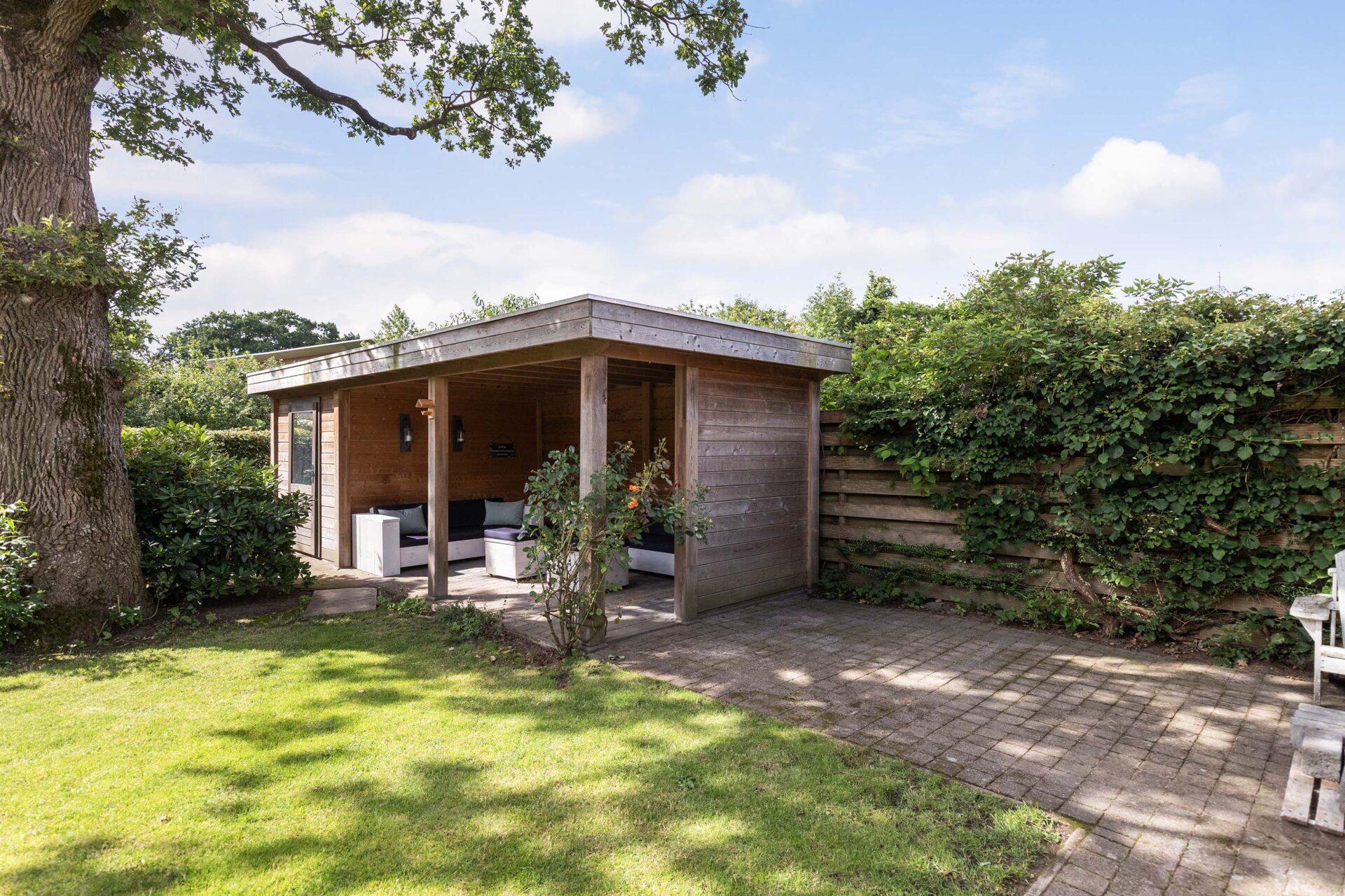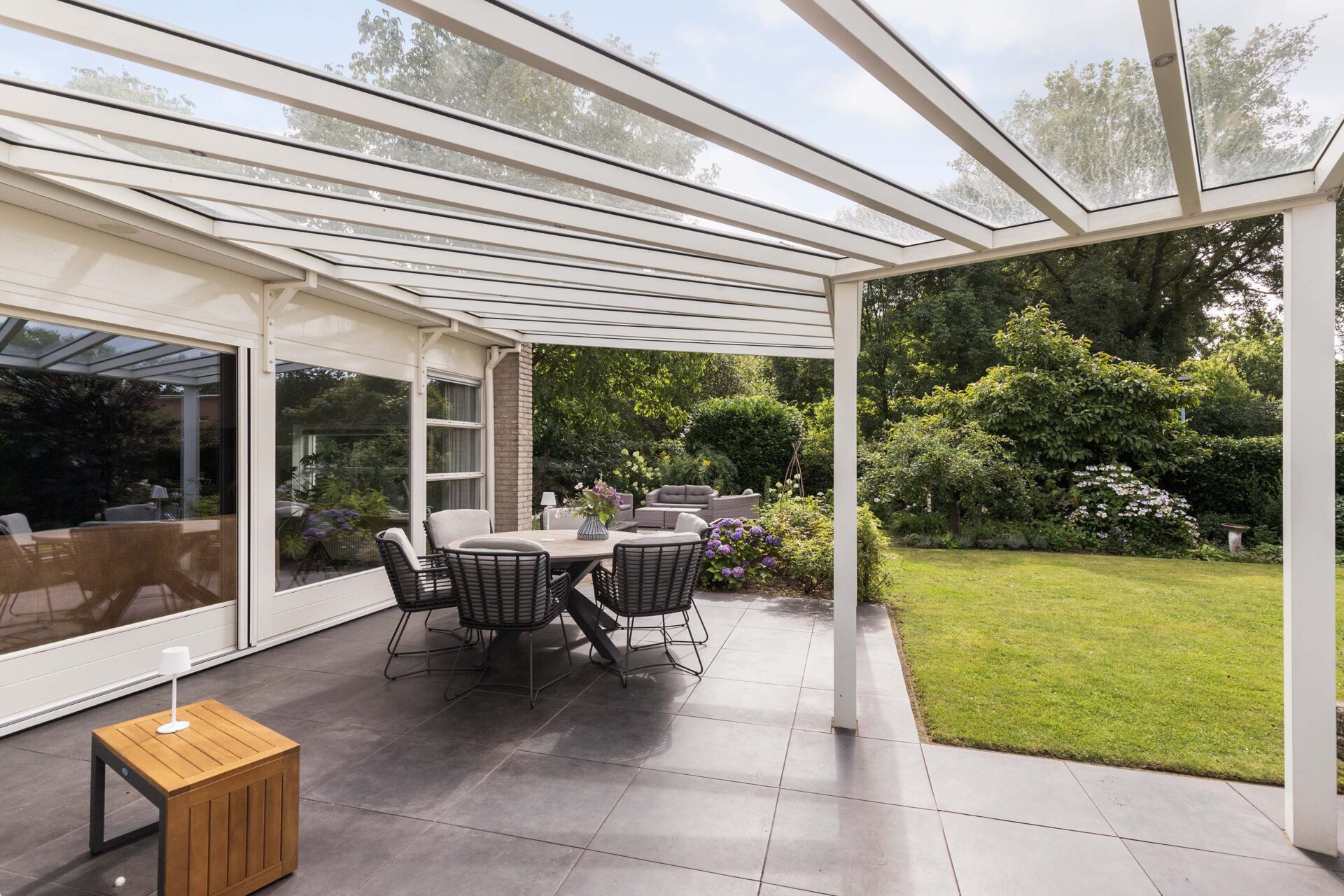 Via de ruime hal met toilet en trapopgang betreedt u de woning. De royale en lichte woonkamer heeft een unieke indeling en staat in open verbinding met de moderne keuken, welke is voorzien van diverse inbouwapparatuur. Vanuit de keuken heeft u toegang tot de bijkeuken met extra toilet. De inpandige garage is ideaal als werk- of hobbyruimte. Aan de achterzijde vindt u een ruime overkapping met glazen dak – een heerlijke plek om het hele jaar van de tuin te genieten. In de tuin bevindt zich bovendien een tweede houten overkapping voor extra beschutting en opslag van tuinmeubilair.