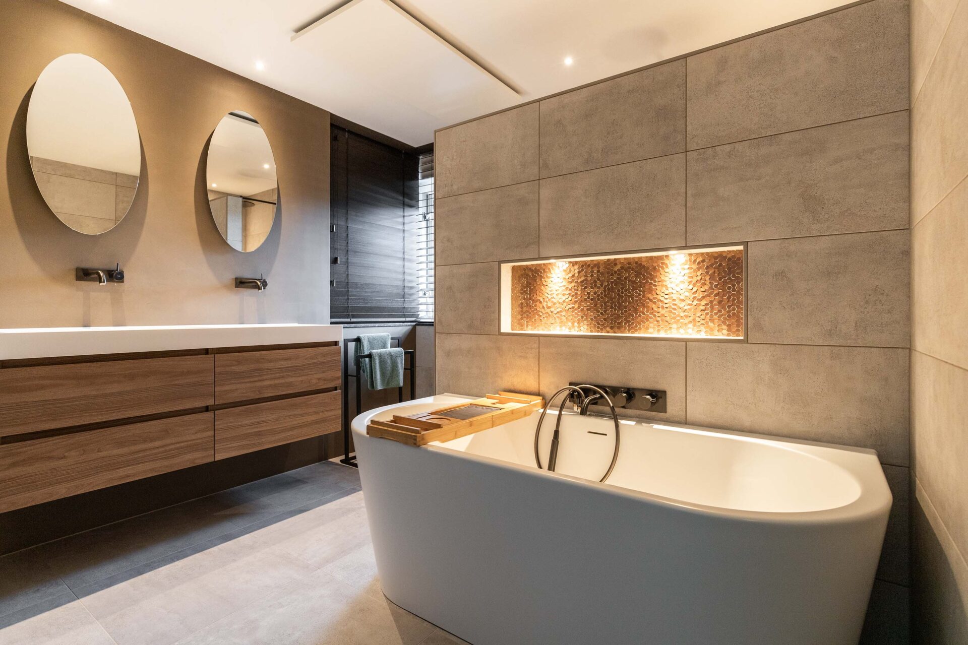 Op de eerste verdieping bevinden zich drie ruime slaapkamers en een luxe badkamer (3 jaar oud), die toegankelijk is via zowel de overloop als de master bedroom. De badkamer is voorzien van een half vrijstaand ligbad, inloopdouche, dubbele wastafel en modern sanitair. Tevens is er een apart toilet aanwezig op deze verdieping.